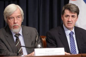 Председник Србије Борис Тадић и генерални директор Европске организације за нуклеарна истраживања (ЦЕРН) Ролф-Дитер Хојер