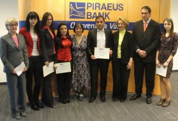 Београд, 28. март 2012. године – Петоро стипендиста Фонда за младе таленте Републике Србије при Министарству омладине и спорта Владе Републике Србије који су се показали као најуспешнији током обављања стручне праксе добили су данас награде Пиреус банке Београд.