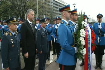 Београд, 6. април 2012. године – Министар одбране у Влади Републике Србије Драган Шутановац предводио је данас делегацију тог министарства и Војске Србије која је положила венац на Споменик пилотима браниоцима Београда априла 1941. године поводом обележавања 71-годишњице почетка Другог светског рата у Србији и бомбардовања градова.