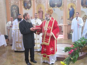 Сремска Митровица, 16. април 2012. године – Министар културе, информисања и информационог друштва у Влади Републике Србије Предраг Марковић посетио је данас манастир Кувеждин, где му је владика сремски Василије уручио Орден Светог Арсенија Сремца, највише одликовање Сремске епархије, у знак захвалности за допринос у обнови фрушкогорских манастира.