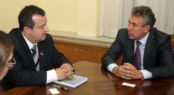 Београд, 23. август 2012. године – Председник Владе Републике Србије и министар унутрашњих послова Ивица Дачић и заменик председника московске Збербанке Сергеј Николајевић Горков разговарали су данас о могућности да ова највећа руска банка системски помогне извоз српских производа у Русију.
