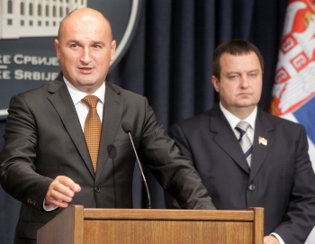| Александар Џомбић и Ивица Дачић на данашњој конференцији за новинаре |