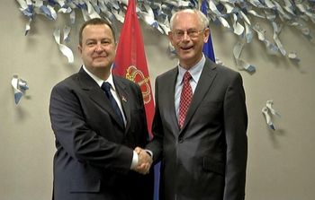 Ван Ромпеј је истакао да је кључни услов за добијање преговора о чланству Србије у ЕУ видљив напредак у дијалогу са Приштином и примена договора постигнутих у Бриселу.