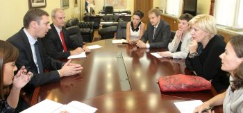 Београд, 19. септембар 2012. године – Први потпредседник Владе задужен за одбрану, безбедност и борбу против корупције и криминала и министар одбране Александар Вучић истакао је данас у разговору са представником ОЕБС-а за слободу медија Дуњом Мијатовић да ће нова Влада гарантовати слободу медија у сваком погледу и да у најскоријем року држава треба да се повуче из медија.