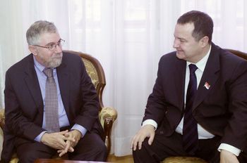 Београд, 3. октобар 2012. године – Председник Владе Републике Србије и министар унутрашњих послова Ивица Дачић разговарао је данас са добитником Нобелове награде за економију Полом Кругманом о економској ситуацији у Србији и путевима за превазилажење кризе.