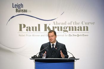 Дачић је на скупу одржаном у хотелу Хајат у Београду, у уводном излагању пре предавања добитника Нобелове награде за економију Пола Кругмана, са