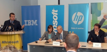 Меморандум су потписали потпредседник Владе Републике Србије и министар спољне и унутрашње трговине и телекомуникација Расим Љајић и амбасадор САД у Србији Мајкл Кирби у просторијама компаније "Мајкрософт софтвер" у Београду.