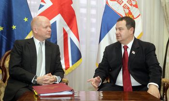 Београд, 25. октобар 2012. године – Председник Владе Републике Србије и министар унутрашњих послова Ивица Дачић и министар спољних послова Велике Британије Вилијам Хејг у данашњем разговору позитивно су оценили настојање Србије да мирним путем и дијалогом решава отворене проблеме.