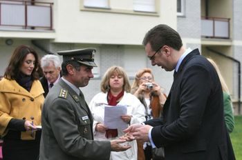 Београд, 13. новембар 2012. године – Први потпредседник Владе Републике Србије задужен за одбрану, безбедност и борбу против корупције и криминала и министар одбране Александар Вучић уручио је данас кључеве станова у насељу Степа Степановић на Вождовцу за породице 92 припадника Војске Србије.