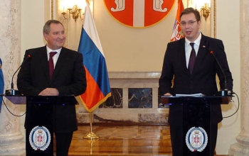 Београд, 28. новембар 2012. године – Први потпредседник Владе Републике Србије задужен за одбрану, безбедност и борбу против криминала и корупције и министар одбране Александар Вучић разговарао је данас са потпредседником Владе Руске Федерације Дмитријем Рогозином о унапређењу војно-економске сарадње.
