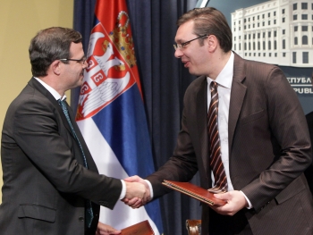 Београд, 14. децембар 2012. године – Први потпредседник Владе Републике Србије задужен за одбрану, безбедност и борбу против корупције и криминала и министар одбране Александар Вучић и потпредседник ЕБРД Ханс Петер Ланкес потписали су данас Меморандум о разумевању "Иницијатива за успостављање сарадње између Владе Србије и ЕБРД-а ради подстицања развоја сектора јавних набавки у Републици Србији".