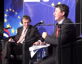 Београд, 24. јануар 2013. године – Министар просвете, науке и технолошког развоја у Влади Републике Србије Жарко Обрадовић и шеф Делегације ЕУ у Србији Венсан Дежер разговарали су данас о Европској унији са више од 200 средњошколаца из седам школа из Београда, Ниша, Лесковца и Чачка.