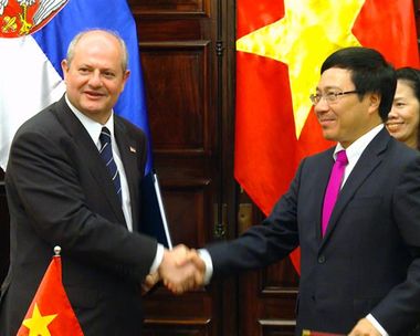 Београд/Ханој, 1. март 2013. године – Министар спољних послова у Влади Републике Србије Иван Мркић и министар индустрије и трговине Вијетнама Ву Хуј Хоанг потписали су данас два међудржавна споразума о привредној сарадњи и током састанка у Ханоју постигли договор о конкретним корацима за њихову реализацију.