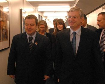 Председник Владе Србије данас се састао и са комесаром ЕУ за екологију Јанезом Поточником, а разговору са комесаром за образовање, културу, мултијезичност и питања младих Андрулом Василиу присуствовао је и министар просвете, науке и технолошког развоја у Влади Србије Жарко Обрадовић.