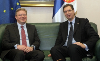 Београд, 18. март 2013. године – Први потпредседник Владе Републике Србије задужен за одбрану, безбедност и борбу против корупције и криминала и министар одбране Александар Вучић истакао је данас током разговора са европским комесаром за проширење Штефаном Филеом да је Србија остварила напредак на европском путу.