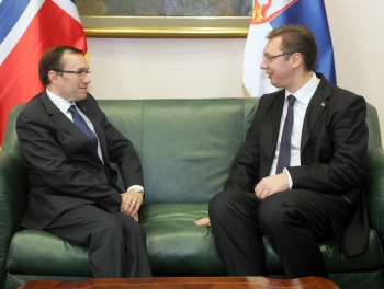 Београд, 24. април 2013. године – Први потпредседник Владе Републике Србије задужен за одбрану, безбедност и борбу против корупције и криминала и министар одбране Александар Вучић разговарао је данас са министром спољних послова Краљевине Норвешке Еспеном Бартх Еидеом.