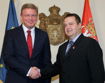 Европски комесар за проширење Штефан Филе саопштио је да је дошао у Београд да охрабри Србију да настави у правцу храбрих одлука и визије на путу ка ЕУ.
