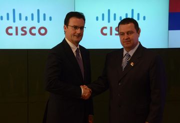 Компанија “Cisco” је лидер у области мрежних технологија, истакао је Дачић и подсетио на то да се 60 одсто технолошких комуникација Владе Србије већ одвија уз помоћ уређаја и производа те компаније.