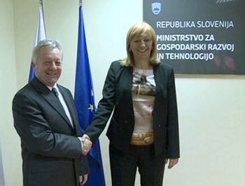Београд/Љубљана, 31. мај 2013. године – Министар регионалног развоја и локалне самоуправе у Влади Републике Србије Верица Калановић састала се данас у Љубљани, током једнодневне посете Словенији, са министром економског развоја и технологије у Влади Словеније Станком Степишником.