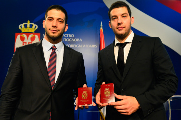 Београд, 7. јун 2013. године – Министар спољних послова у Влади Републике Србије Иван Мркић уручио је данас дипломатске пасоше најбољим српским ватерполистима Вањи Удовичићу и Филипу Филиповићу.