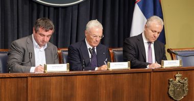 | Душан Бајатовић, Бруно Веронез и Млађан Динкић |