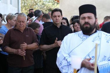 Старо Грацко, 23. јул 2013. године – Директор Канцеларије за Косово и Метохију Владе Републике Србије Александар Вулин присуствовао је данас у селу Старо Грацко на Косову и Метохији парастосу за четрнаест српских жетелаца који су убијени из заседе на њиви 1999. године.