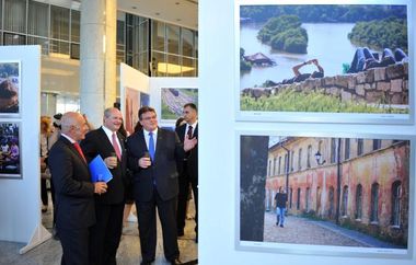 Београд, 25. јул 2013. године – Министар спољних послова у Влади Републике Србије Иван Мркић и министар спољних послова Литваније Линас Линкевичијус отворили су данас у галерији Народне банке Србије седму по реду изложбу фотографија "Примењена носталгија".