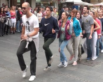 Више од четрдесет плесача учествовало је у петоминутном музичко-плесном перформансу, где је кроз игру, познате мелодије и непосредну комуникацију и интеракцију са грађанима представљена сарадња Србије са државама чланицама Европске уније које нас окружују - Бугарском, Мађарском, Румунијом и Хрватском.