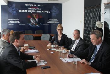 Београд, 1. октобар 2013. године – Министар правде и државне управе у Влади Републике Србије Никола Селаковић разговарао је данас са шефом Канцеларије Светске банке у Србији Тонијем Верхеијеном и вођом Пројекта подршке реформи правосуђа у Србији Клаусом Декером о унапређењу сарадње и будућој подршци Светске банке у области реформе правосуђа.
