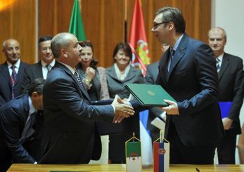 Београд, 7. новембар 2013. године – Први потпредседник Владе Републике Србије Александар Вучић и министар за водне ресурсе Алжира Хусеин Насеб потписали су данас четири споразума о сарадњи и том приликом поновили да је добра политичка сарадња двеју земаља конкретизована у унапређење економске сарадње.