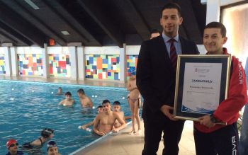 Министар је данас у Ивањици уручио специјалну захвалницу за изузетан и несебичан допринос и активно учешће у развоју спорта и бриге о деци Владимиру Бошковићу, професору физичког васпитања који је за осам година, без икакве финансијске надокнаде, обучио приближно 800 житеља Ивањице узраста од пет до 40 година да пливају.