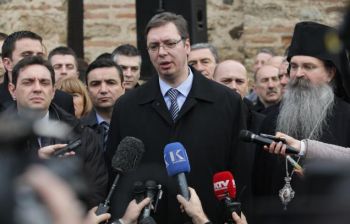 Грачаница, 7. јануар 2014. године – Први потпредседник Владе Републике Србије Александар Вучић поручио је данас да Срби желе мир, преговоре и разговоре са привременим институцијама власти у Приштини, и додао да наша земља никад неће заборавити свој народ, посебно не онај на Космету.