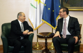Вучић је исказао захвалност на подршци Кипра европским интеграцијама и територијалном интегритету и суверенитету Србије, и нагласио да ова земља може да рачуна на подршку Београда на међународној сцени.