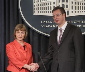 Београд, 24. фебруар 2014. године – Први потпредседник Владе Републике Србије Александар Вучић и први потпредседник Владе Хрватске и министар спољних и европских послова Весна Пусић саопштили су данас да две земље неће повући међусобне тужбе за геноцид поднете Међународном суду правде у Хагу, али и истакли да је то питање прошлости, која не сме да оптерећује садашњост и будућност.