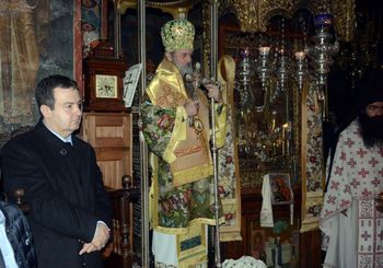 Дачић је присуствовао и литургији након које је обишао манастир и разговарао са Свештеном управом – Протатом Свете горе.