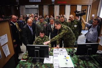 Београд, 8. април 2014. године – Министар одбране у Влади Републике Србије Небојша Родић и начелник Генералштаба Војске Србије Љубиша Диковић обишли су данас учеснике међународне вежбе "Викинг 14", која се одржава уз помоћ рачунарских симулација у касарни "Бањица II" у Београду.