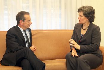 Београд, 8. мај 2014. године – Потпредседник Владе Републике Србије и министар државне управе и локалне самоуправе Кори Удовички разговарала је данас са директором Европске банке за обнову и развој (ЕБРД) за Србију Матеом Патронеом.