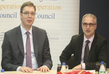 Београд/Сарајево, 13. мај 2014. године – Председник Владе Републике Србије Александар Вучић посетио је данас у Сарајеву седиште Савета за регионалну сарадњу (RCC), где је разговарао са генералним секретаром те организације Гораном Свилановићем.