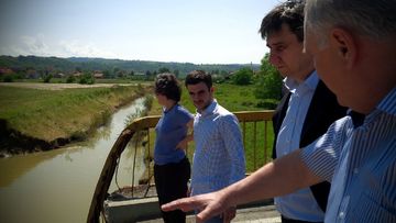 Кори Удовички и Лазар Крстић код срушеног моста у општини Коцељева
