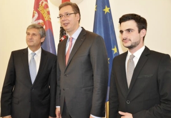 | Слева: Михаел Шпинделегер, Александар Вучић и Лазар Крстић |