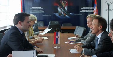 Београд, 6. јун 2014. године – Министар правде у Влади Републике Србије Никола Селаковић разговарао је данас са амбасадором и шефом Мисије ОЕБС-а у Србији Петером Буркхардом о досадашњим и будућим активностима тог министарства у вези са процесом преговарања Србије са ЕУ.