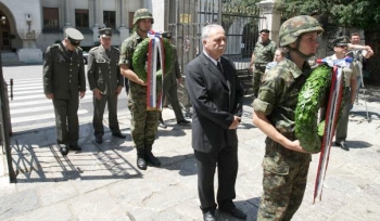 Крај саркофага прослављеног владара положени су ловорови венци и одате државне и војне почасти.