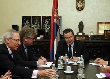 | Амбасадор САД у Србији Мајкл Кирби, Сајмон Хеншо и Ивица Дачић |