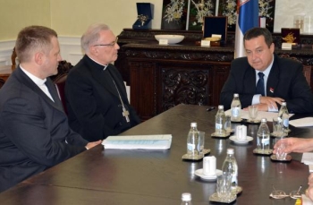 Београд, 25. јун 2014. године – Први потпредседник Владе Републике Србије и министар спољних послова Ивица Дачић разговарао је данас са апостолским нунцијем Свете столице у Београду Орландом Антонинијем поводом предстојеће посете секретара за односе са државама Свете столице Доминика Мамбертија.