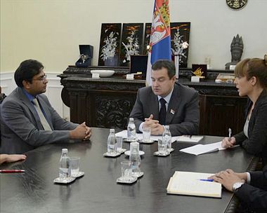 Београд, 4. јул 2014. године – Први потпредседник Владе Републике Србије и министар спољних послова Ивица Дачић разговарао је данас са председником Српског института из Вашингтона Данијелом Сремац и директором "Babson Global" института из Бостона за програме развоја Шанкером Сигамом.