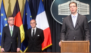 Београд, 15. јул 2014. године – Председник Владе Републике Србије Александар Вучић саопштио је да су министарства унутрашњих послова Србије, Немачке и Француске данас формирала радну групу која ће се бавити питањима која су од великог значаја за Србију и њене грађане.