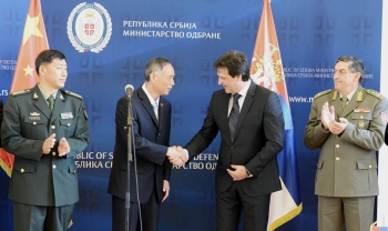 Београд, 23. јул 2014. године – Министар одбране у Влади Републике Србије Братислав Гашић и амбасадор НР Кине у Србији Ли Манчанг присуствовали су данас потписивању Протокола о донацији Министарства одбране Кине Министарству одбране и Војсци Србије, која обухвата опрему и медицинска средства у вредности од 350.000 евра.