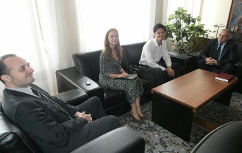 Београд, 8. август 2014. године – Директор Управе за сарадњу с црквама и верским заједницама Министарства правде Владе Републике Србије Милета Радојевић разговарао је 6. августа у Београду са координатором за Балкан из међународне мировне омладинске групе при организацији „Небеска култура, светски мир, повратак светлости“ из Јужне Кореје Џемсом Џонгом.