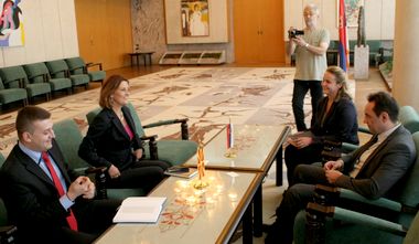 Београд, 25. август 2014. године – Министар за рад, запошљавање, борачка и социјална питања у Влади Републике Србије Александар Вулин и амбасадор Републике Македоније у Србији Вера Јовановски Типко разговарали су данас о предстојећим активностима Србије на обележавању 100-годишњице почетка Првог светског рата.