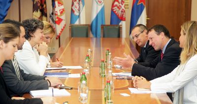 Београд, 3. септембар 2014. године – Потпредседник Владе Републике Србије и министар државне управе и локалне самоуправе Кори Удовички разговарала је данас са регионалним директором ЕБРД за централну и југоисточну Европу Жан-Марком Петершмитом о унапређењу инвестиционе климе и подршци коју та институција може да пружи рационализацији, односно унапређењу ефикасности рада предузећа на локалном нивоу.